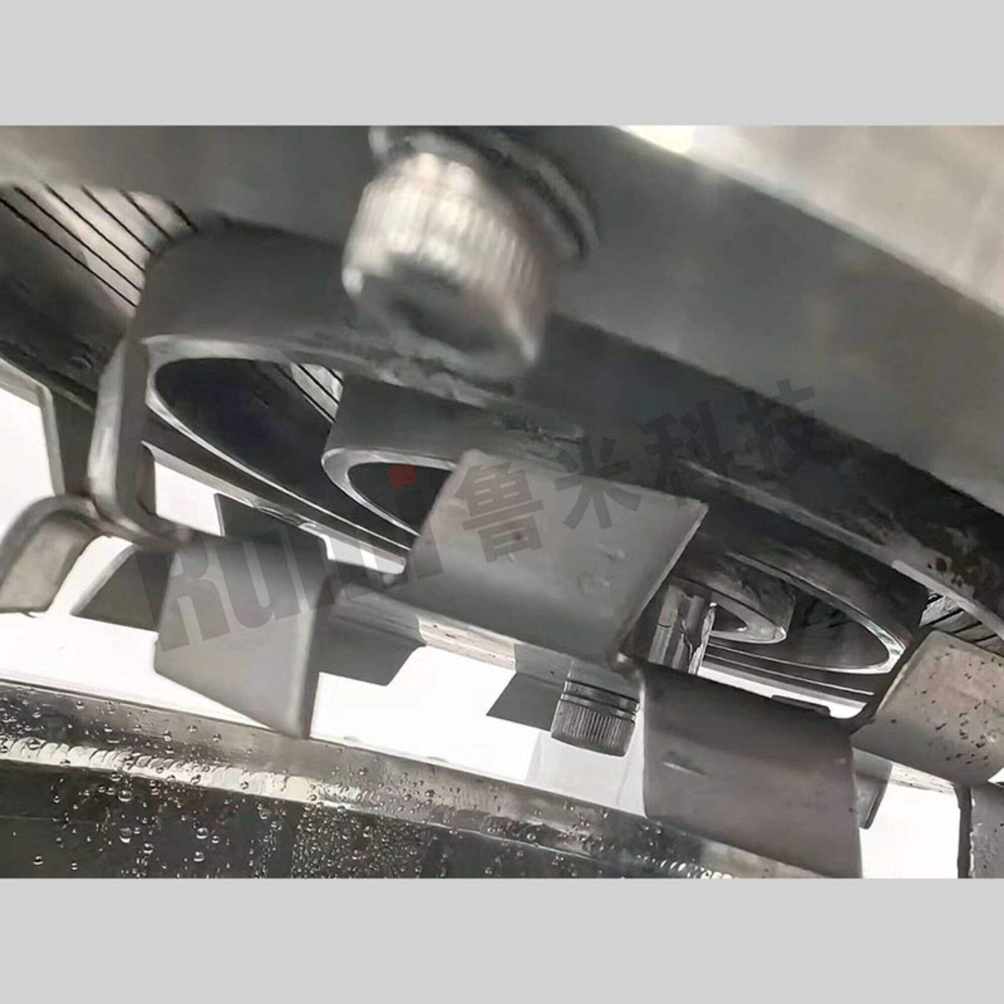 When the basket mill is working, the motor drives the lever and the bottom dispersion disk to rotate at a high speed, causing a vacuum on the upper part of the dispersion disk and inside the basket chamber. Then the slurry is sucked into the basket grinding chamber. The lever drives the grinding media in the chamber to generate forces in all directions. The particles in the material are constantly collided and rubbed by the media, making the particle size smaller. The high-speed operation of the dispersing disc generates volex flow to suck out the material from the chamber and recirculate it, which has a very significant dispersing, grinding and mixing effect.