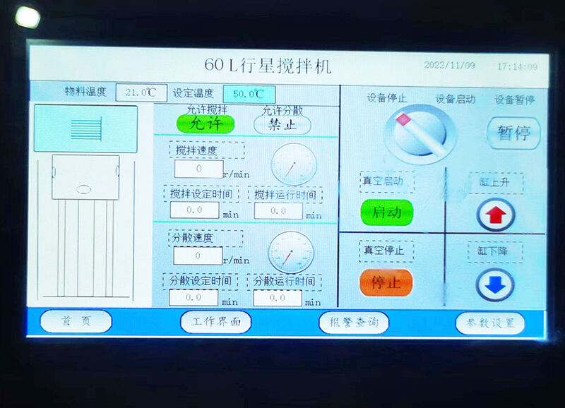 This vacuum double planetary mixer is also equipped with a vacuum system, which can maintain a vacuum state in the tank during the mixing process. This vacuum function effectively avoids chemical reactions between the materials and oxygen in the air, and ensures the quality and stability of the mixture. In addition, the vacuum system can also eliminate bubbles generated during mixing, further improving the mixing effect. During the mixing process, a heating and cooling device can be used to heat or cool the mixture according to the material features or process requirements.