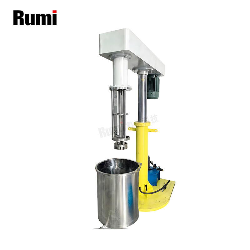 use an oil hydraulic lift to raise and lower the rotor-stator blade from and into the mixing tank. The lifting is stable and safe
