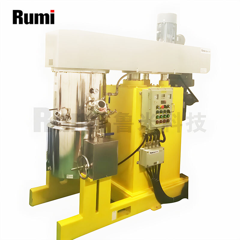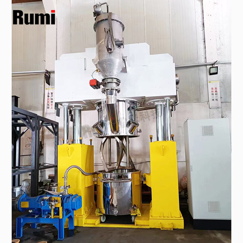 The mixer consist of double planetary paddles, high speed disperser and wall scraper.