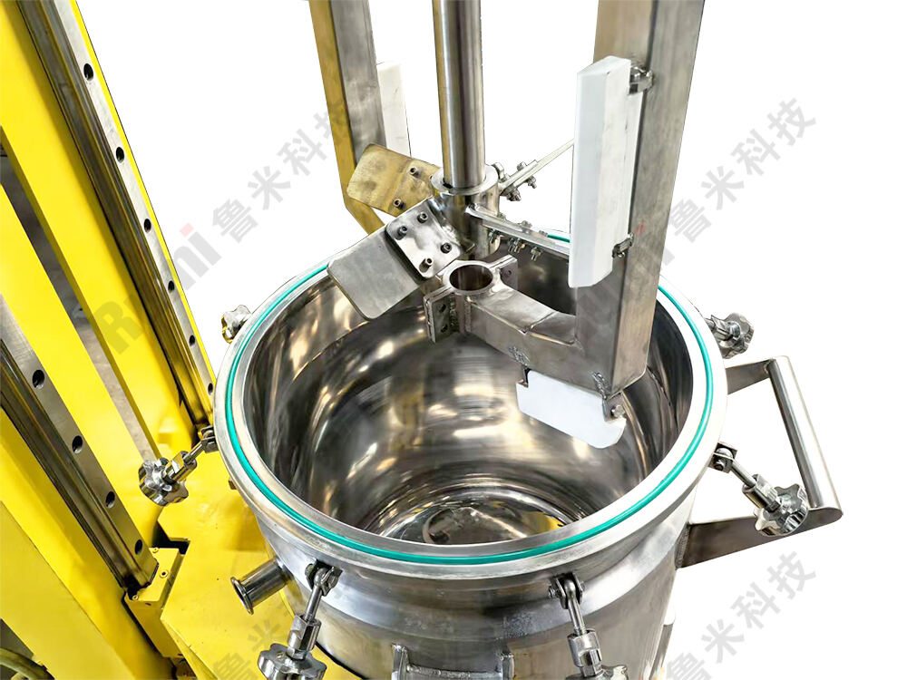 Full-Wall Scraping: The agitator features flexible or rigid scrapers (PTFE material) that rotate closely against the bucket wall, preventing material adhesion or clumping and ensuring thorough mixing.